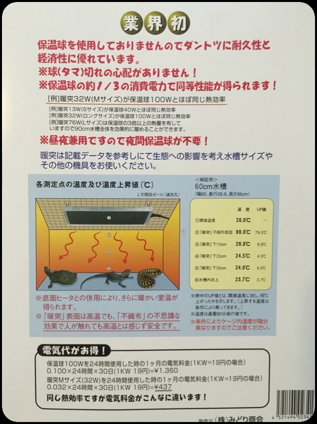 パネルヒーター みどり商会 暖突 を買ってみた まゆみん解説 亀の飼育 大辞典道場 マニアーナ まにあ道 趣味と遊びを極めるサイト